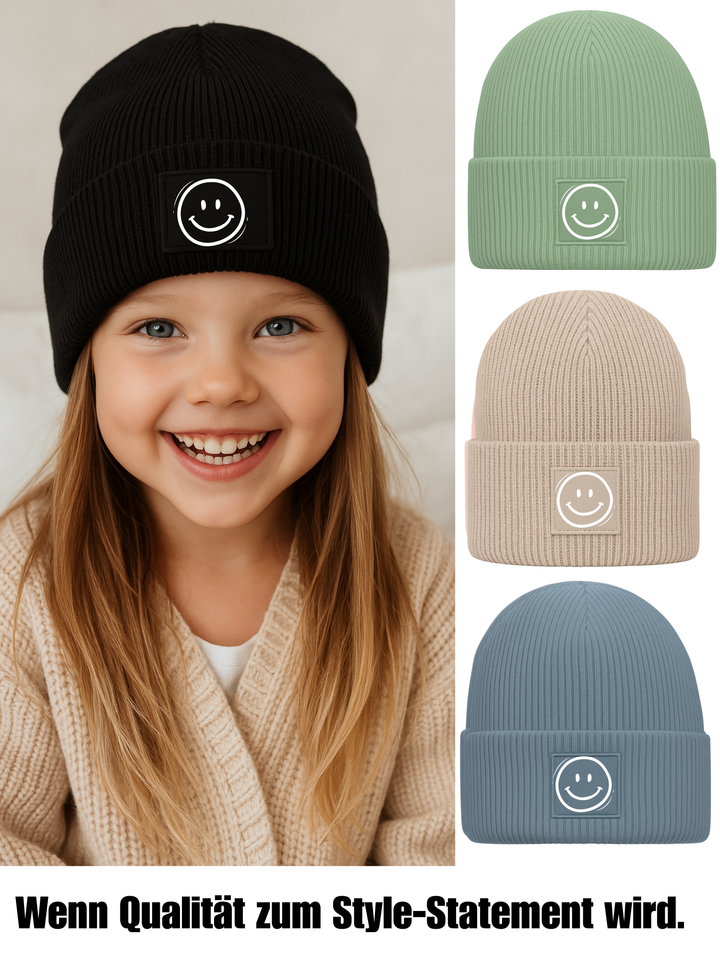 Strick-Mütze Smiley – Stylisch, bequem & umweltfreundlich! 🌿