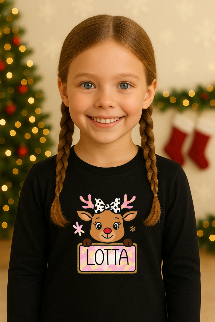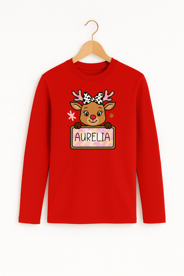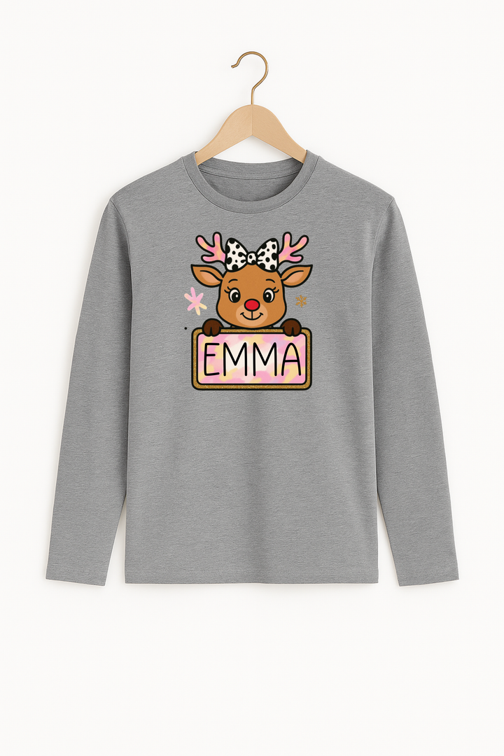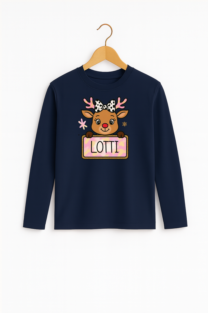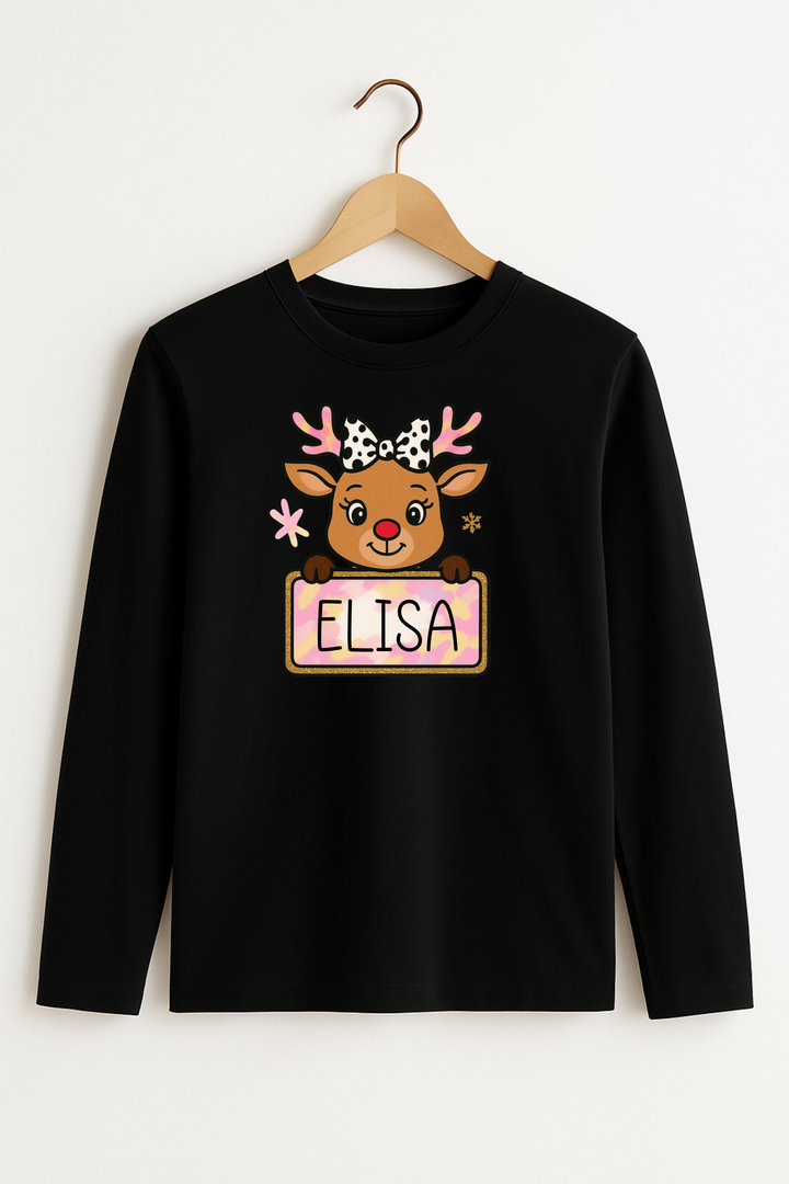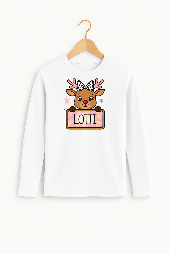 Personalisiertes Langarmshirt "Rentier Rosa" aus -Baumwolle – Nachhaltiger Tragekomfort für die festliche Saison 🌿❄️