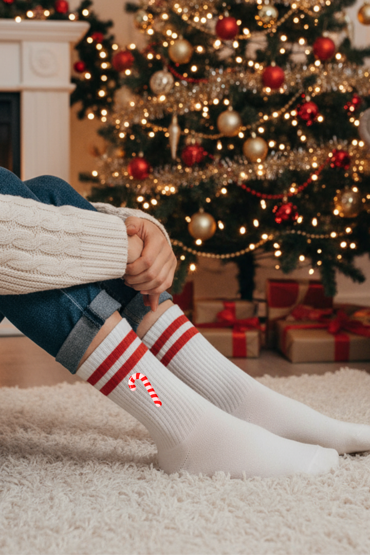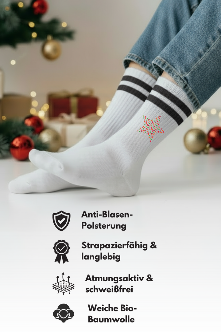 ✔️ Design: Weiße Socken Weihnachten mit festlichen Streifen & Motiv