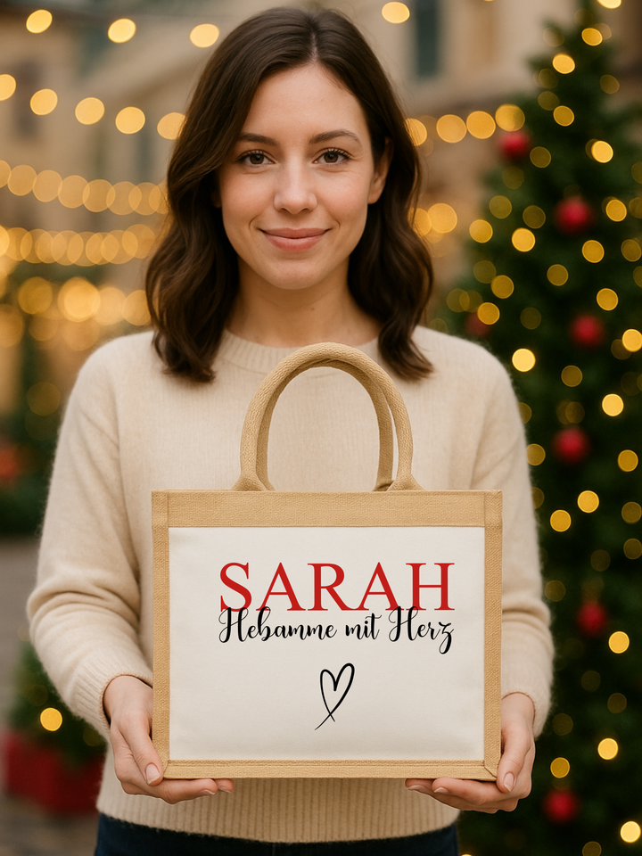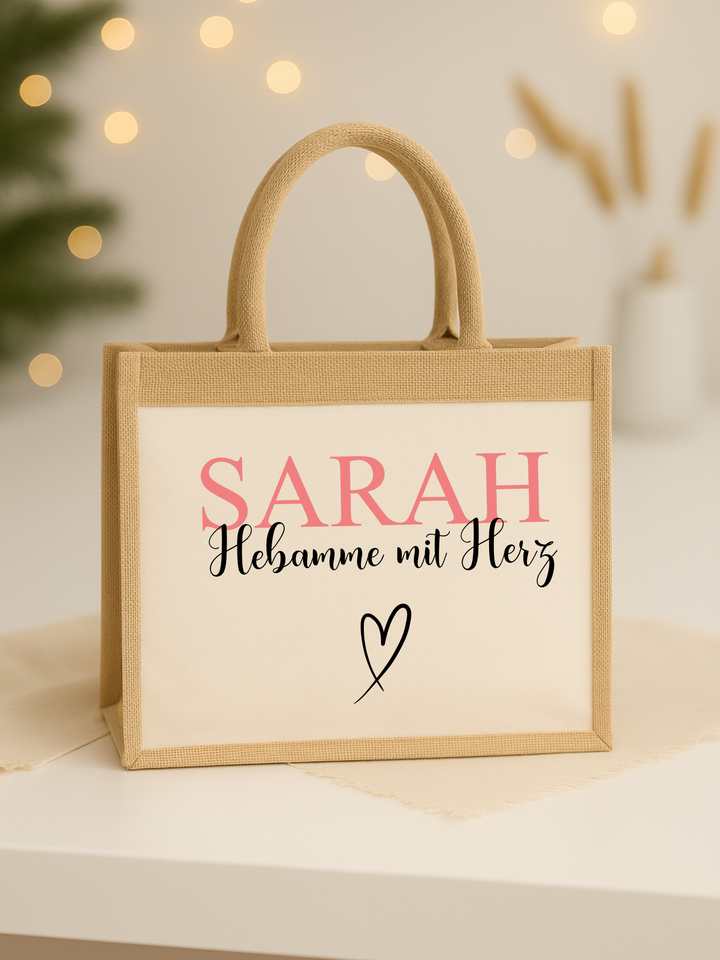 Diese personalisierte Jutetasche ist ein praktisches und stilvolles Accessoire für den Arbeitsalltag oder Freizeitaktivitäten. Perfekt als Geschenk für deine Lieblingshebamme, Lehrkraft oder Erzieher! 🎁👩‍🏫👩‍⚕️