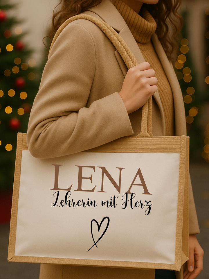 Diese hochwertige Jutetasche mit Wunschname ist das perfekte Geschenk 🎁 für Hebammen, Lehrer oder Erzieher. Ob für den täglichen Gebrauch oder besondere Anlässe – die Tasche ist ein echter Hingucker und bietet viel Platz für alles, was im Alltag gebraucht wird. Dank der verschiedenen Größen passt sie sich deinen Bedürfnissen an! ✨