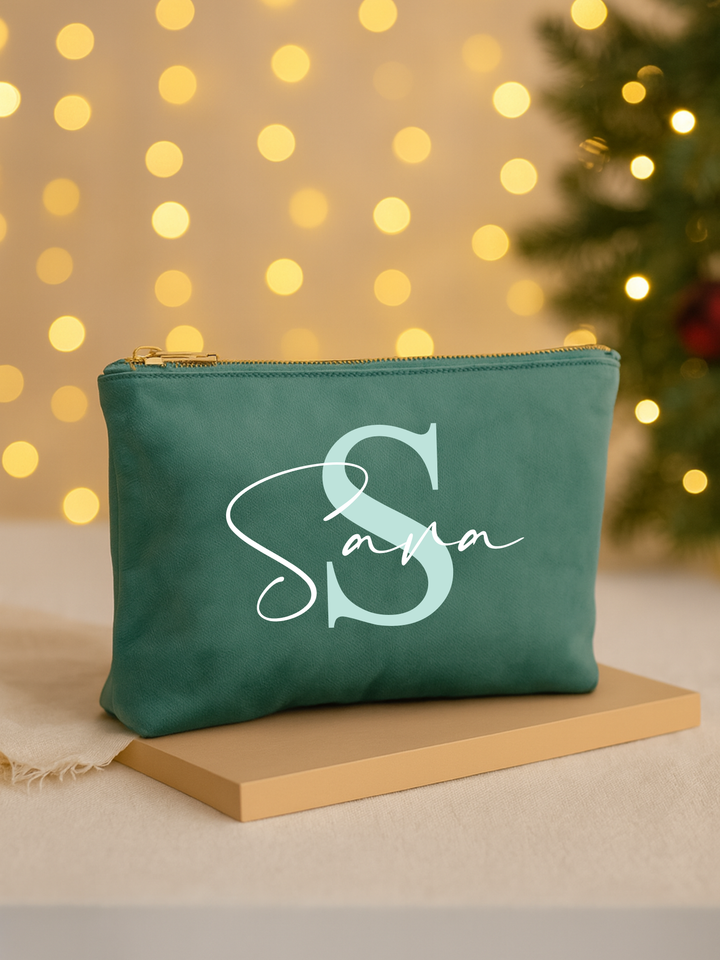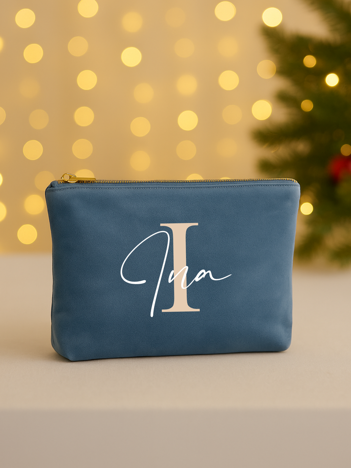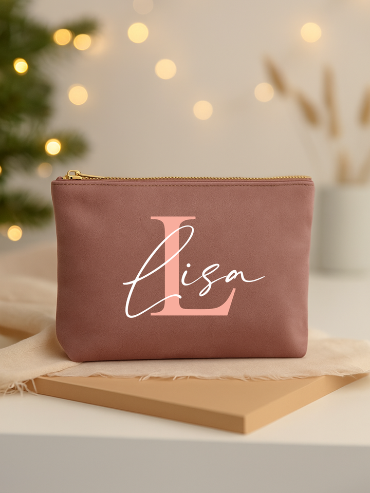 Kosmetiktasche Samt mit Wunschnamen und Initial