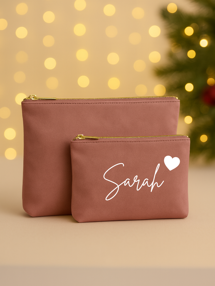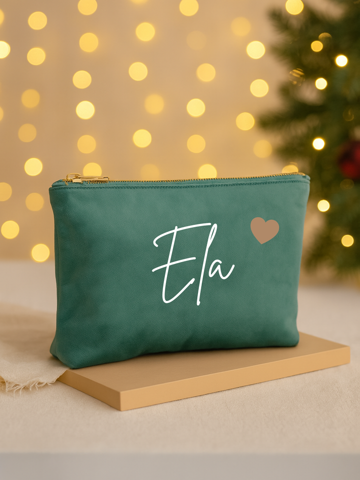 Kosmetiktasche mit Wunschnamen aus Samt