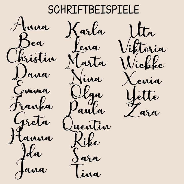 - 🖤 Schlichte Eleganz: Schwarze Schrift für den Namen