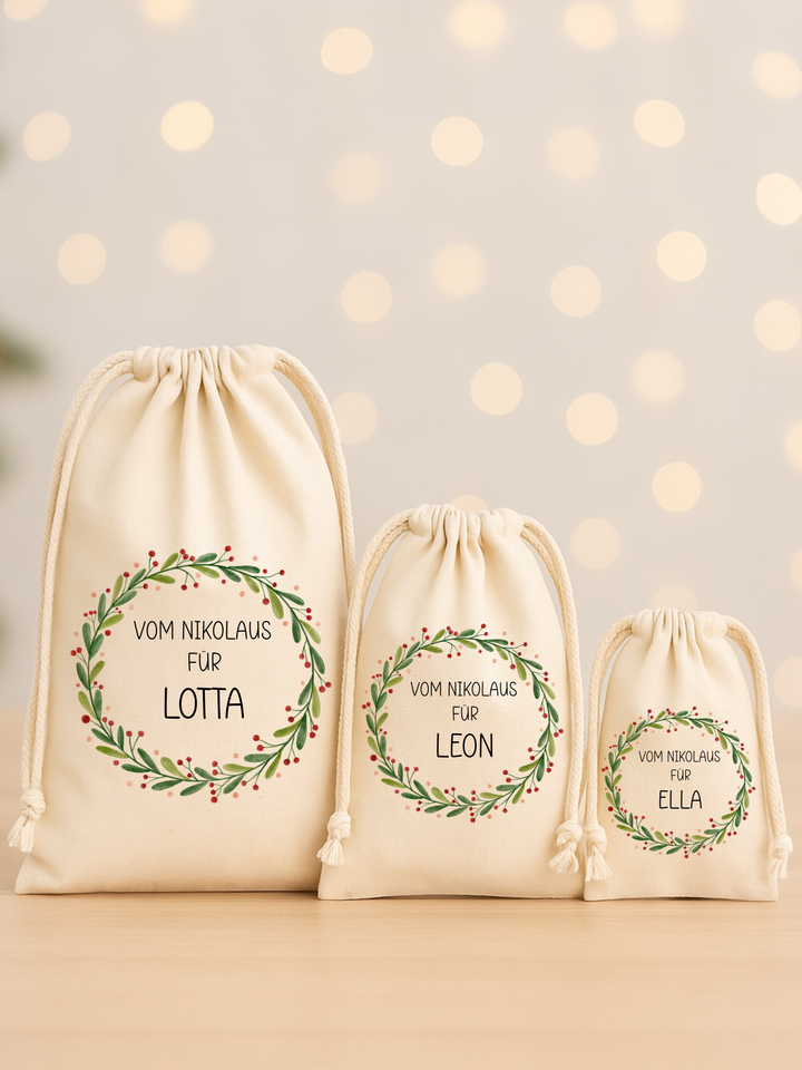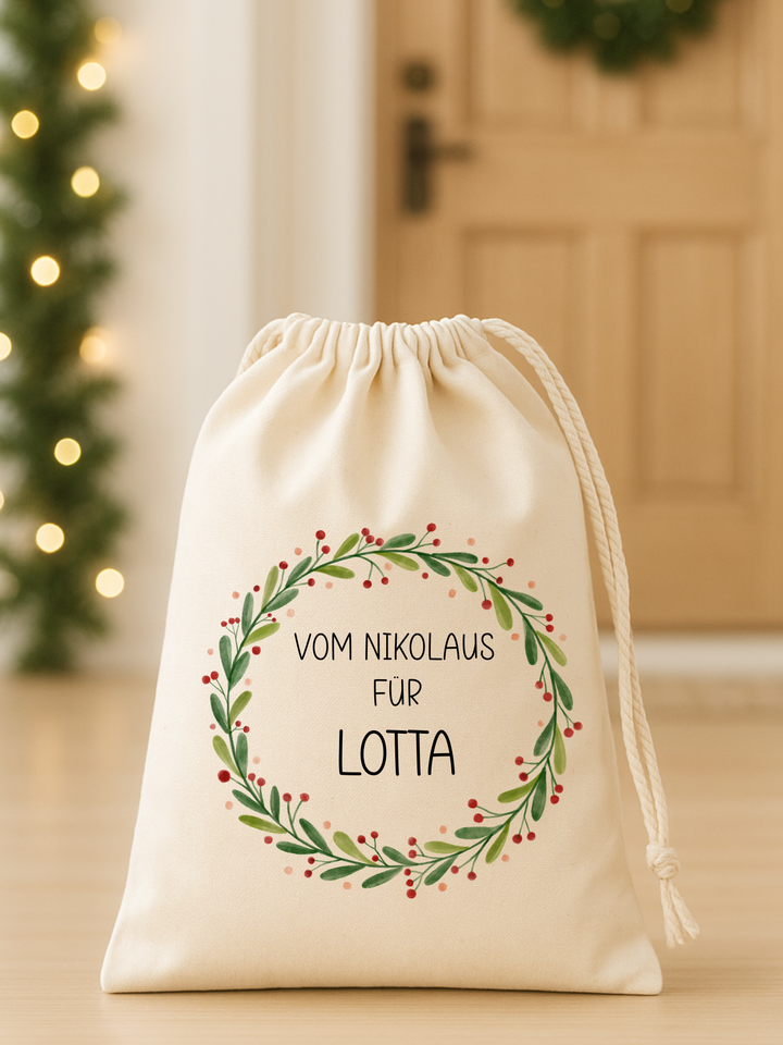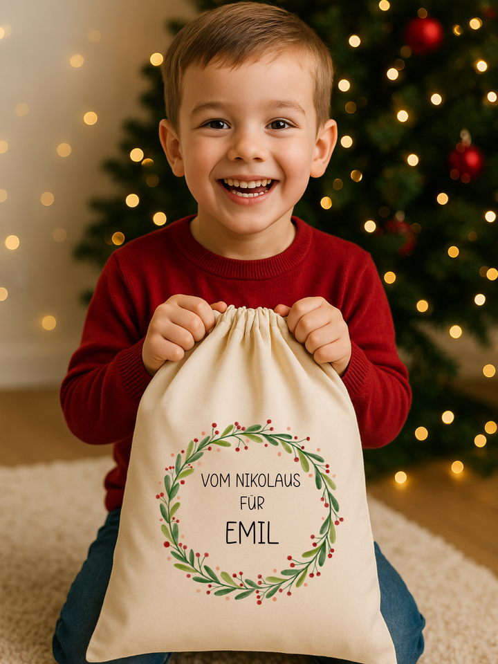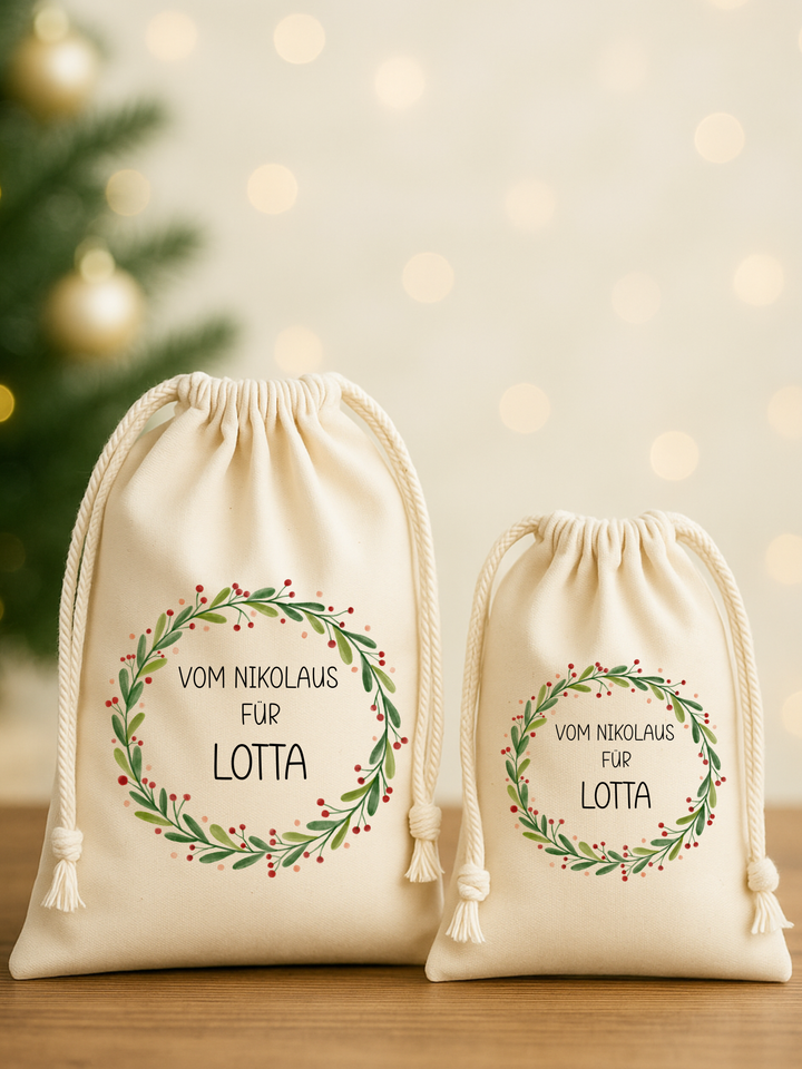 Personalisierter Geschenkebeutel "Weihnachtskranz"